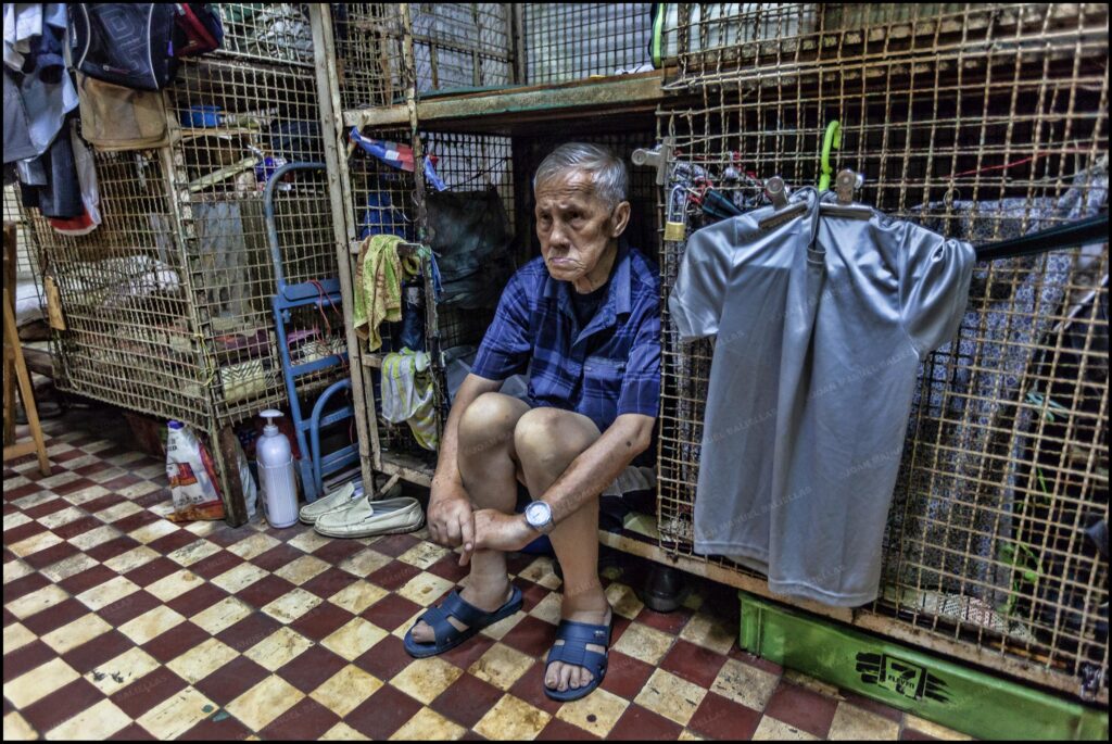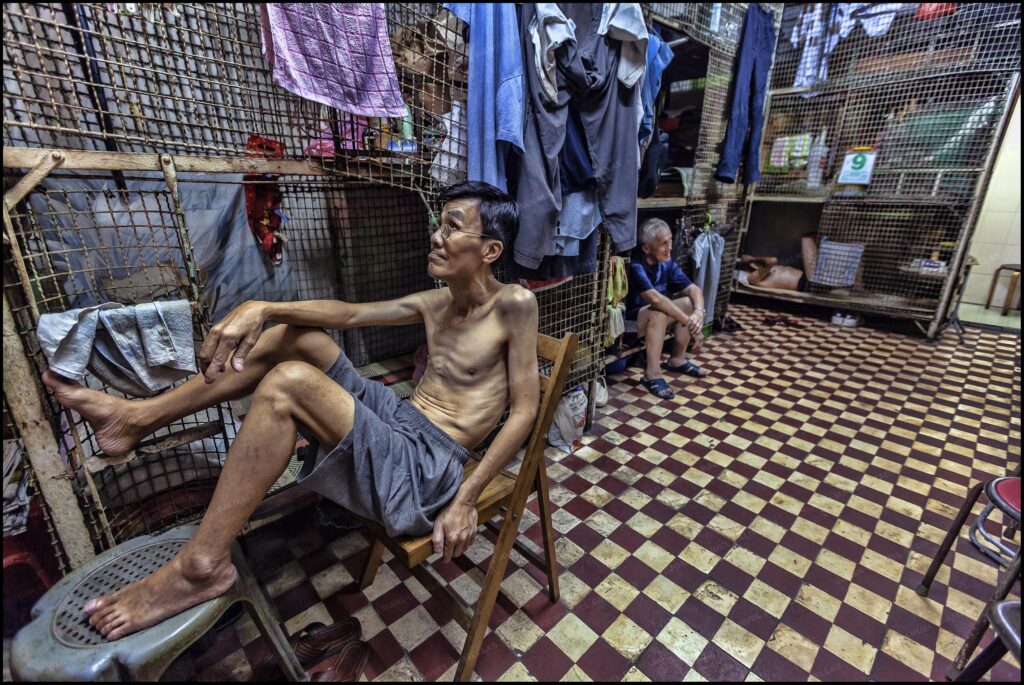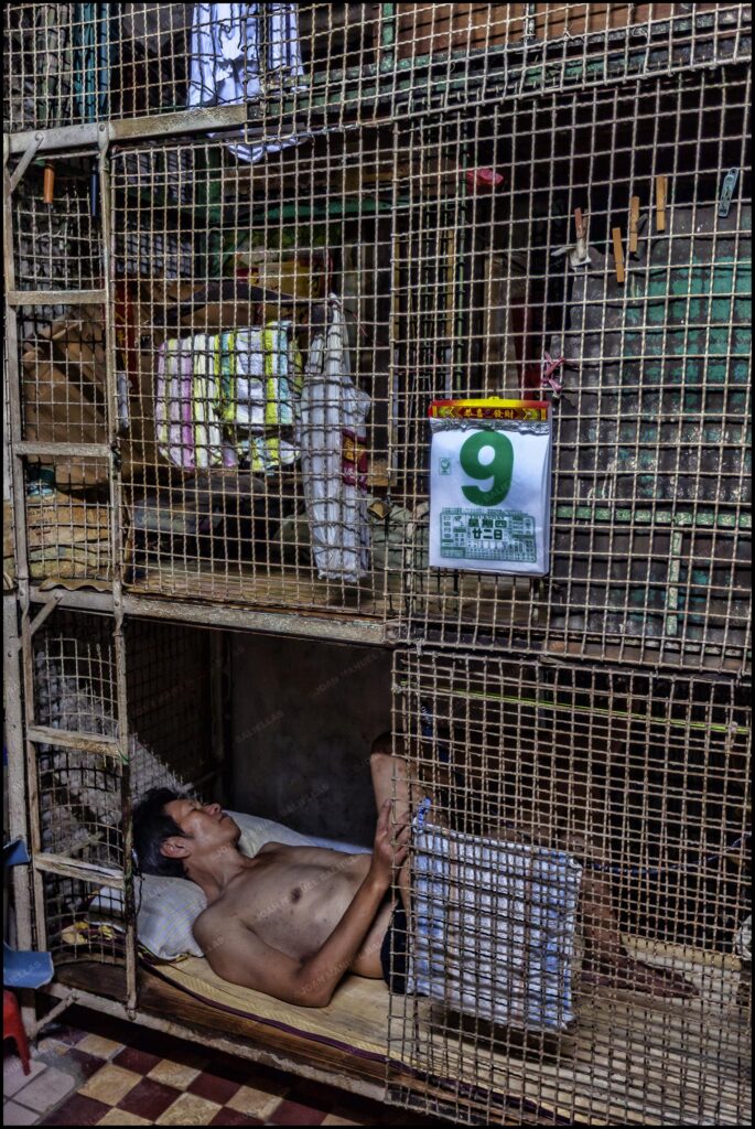 Tuvieron que adaptarse a vivir y tener todo su mundo y sus pertenencias dentro de una litera enjaulada, se les conoce como los “Cageman“ u “ hombre jaula“, aunque también hay alguna mujer.