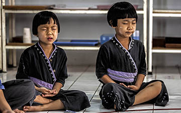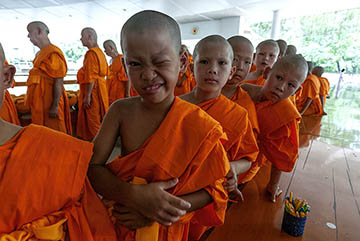 Newly admitted children in a Buddhist temple on the outskirts of Bangkok..