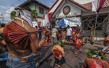 Some of them walk barefoot to increase their penance.