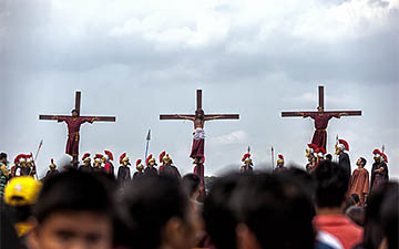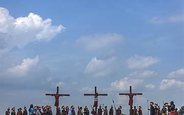 The penitents carry their heavy crosses throughout the procession.