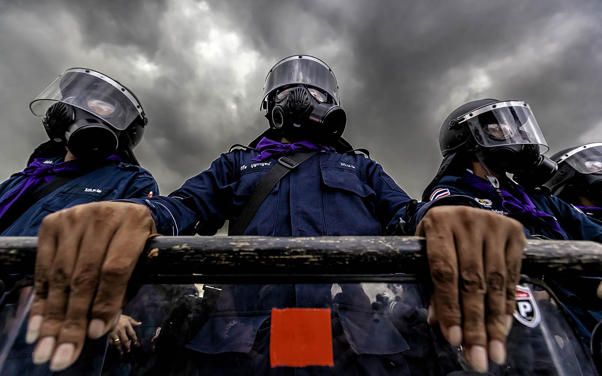Even if they are the hands of a riot police, the manicure is also important. Thailand.