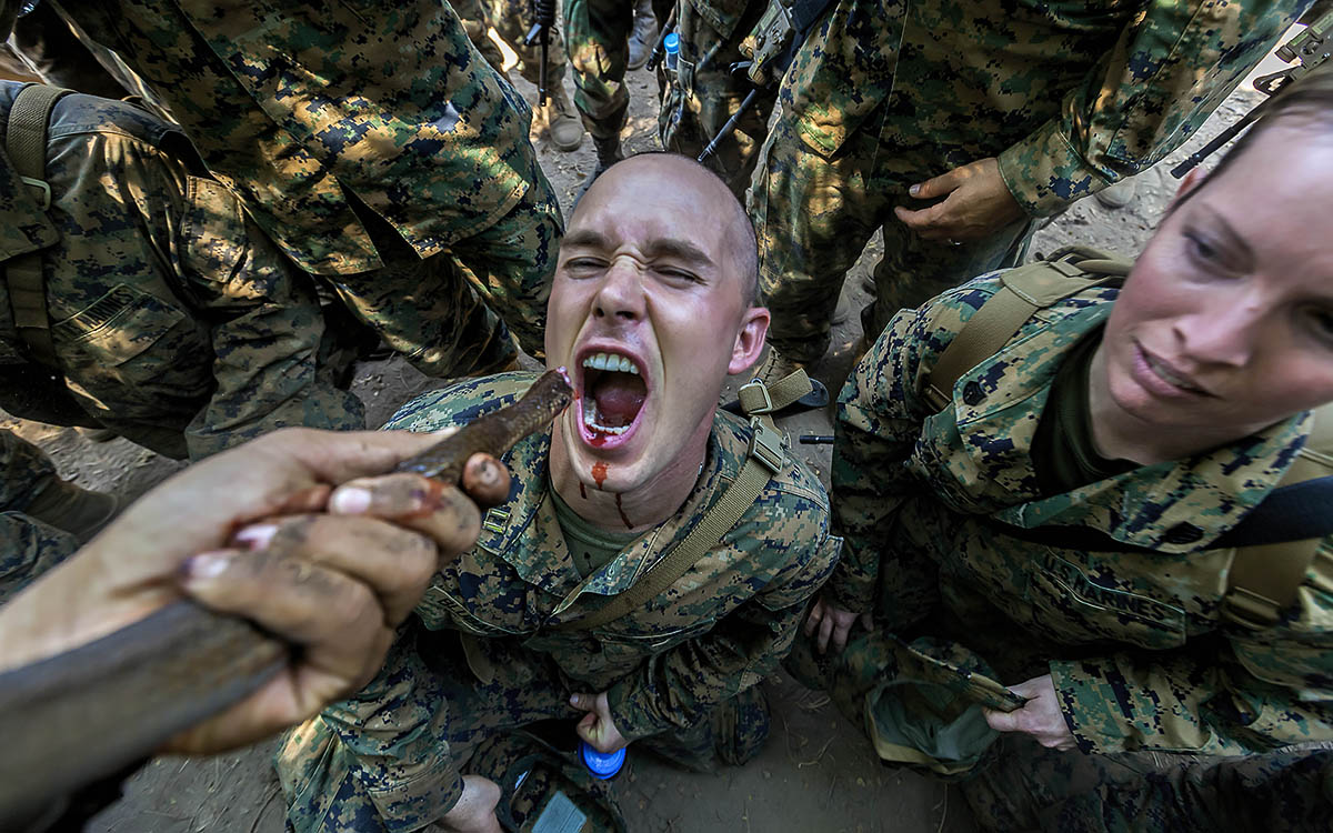US soldiers from the Marine Corps, drink snake blood during military maneuvers in the jungle of Thailand.