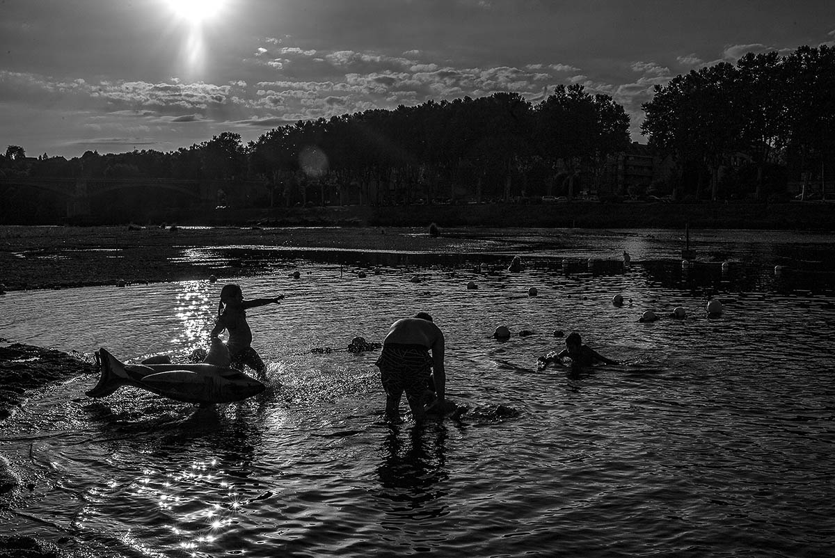 The heat in the interior of France is only bearable, on the beaches formed in the rivers, like this one of the city of Nevers, France.