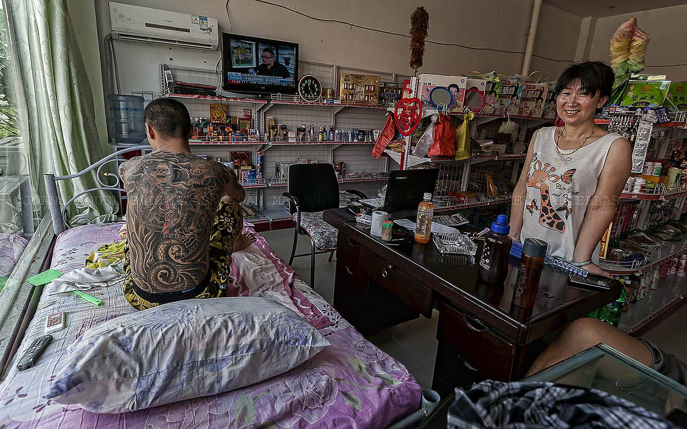 Many Asians spend their lives inside their shops, there they also have their home. Laos