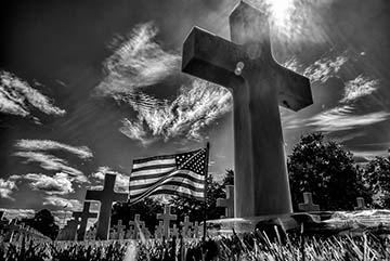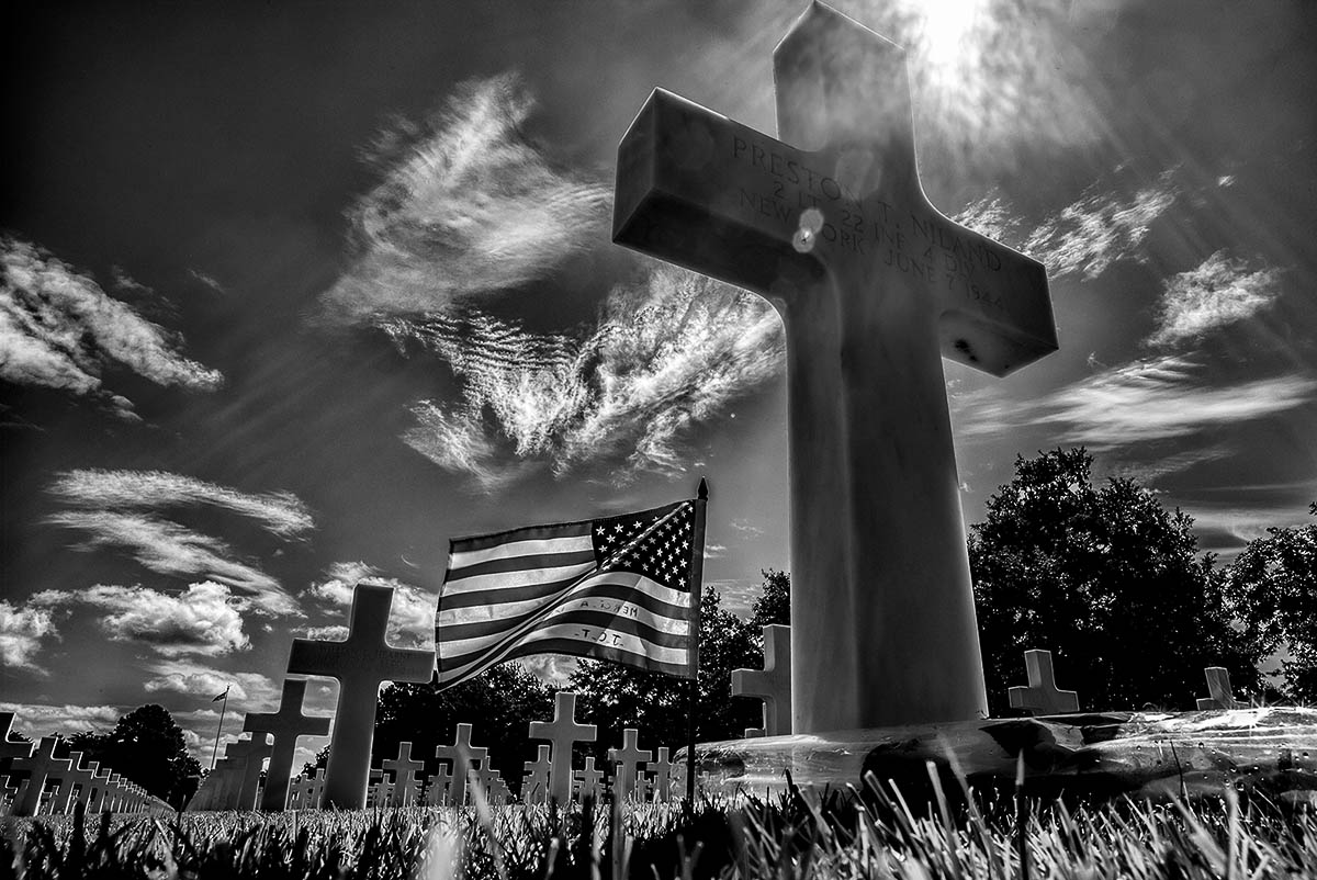 An USA flag is deposited in one of the many tombs that are in the American cemetery, in front of the beaches of Omaha.Normandie, France