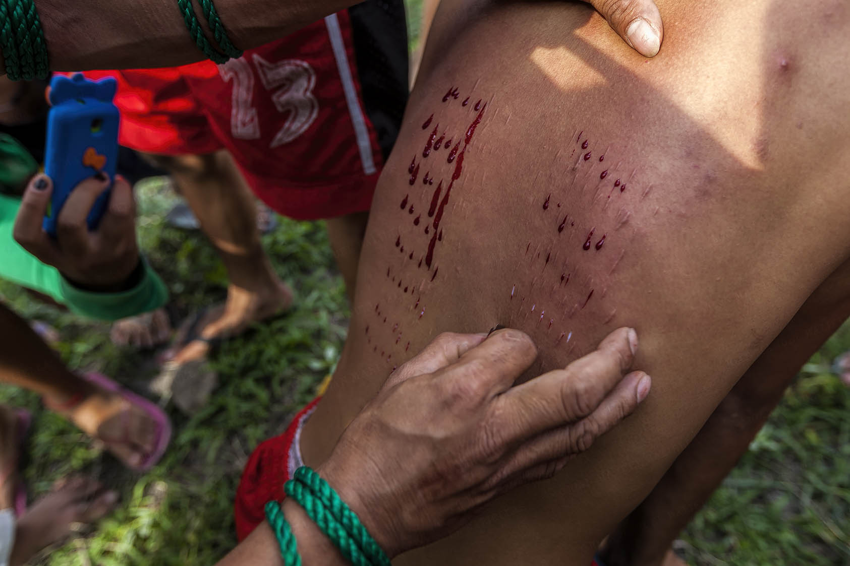 Once started and after some fustigations, the back is ready to be cut and bleeding throughout the entire journey.