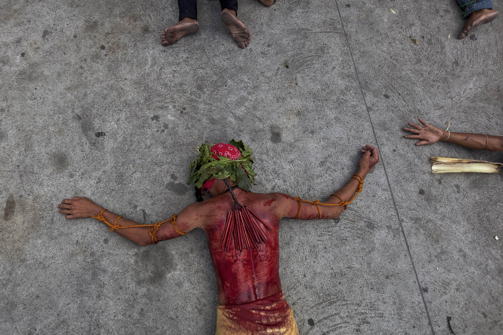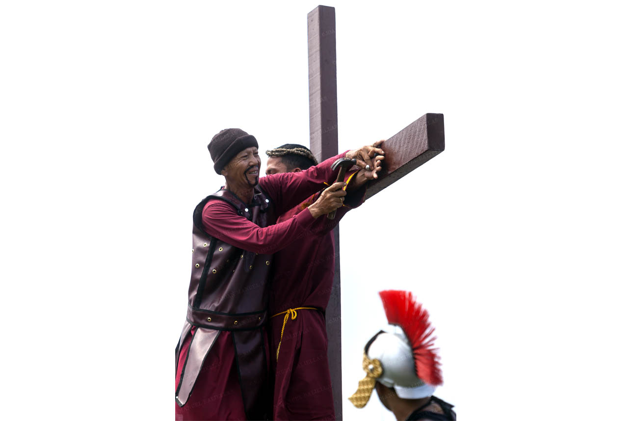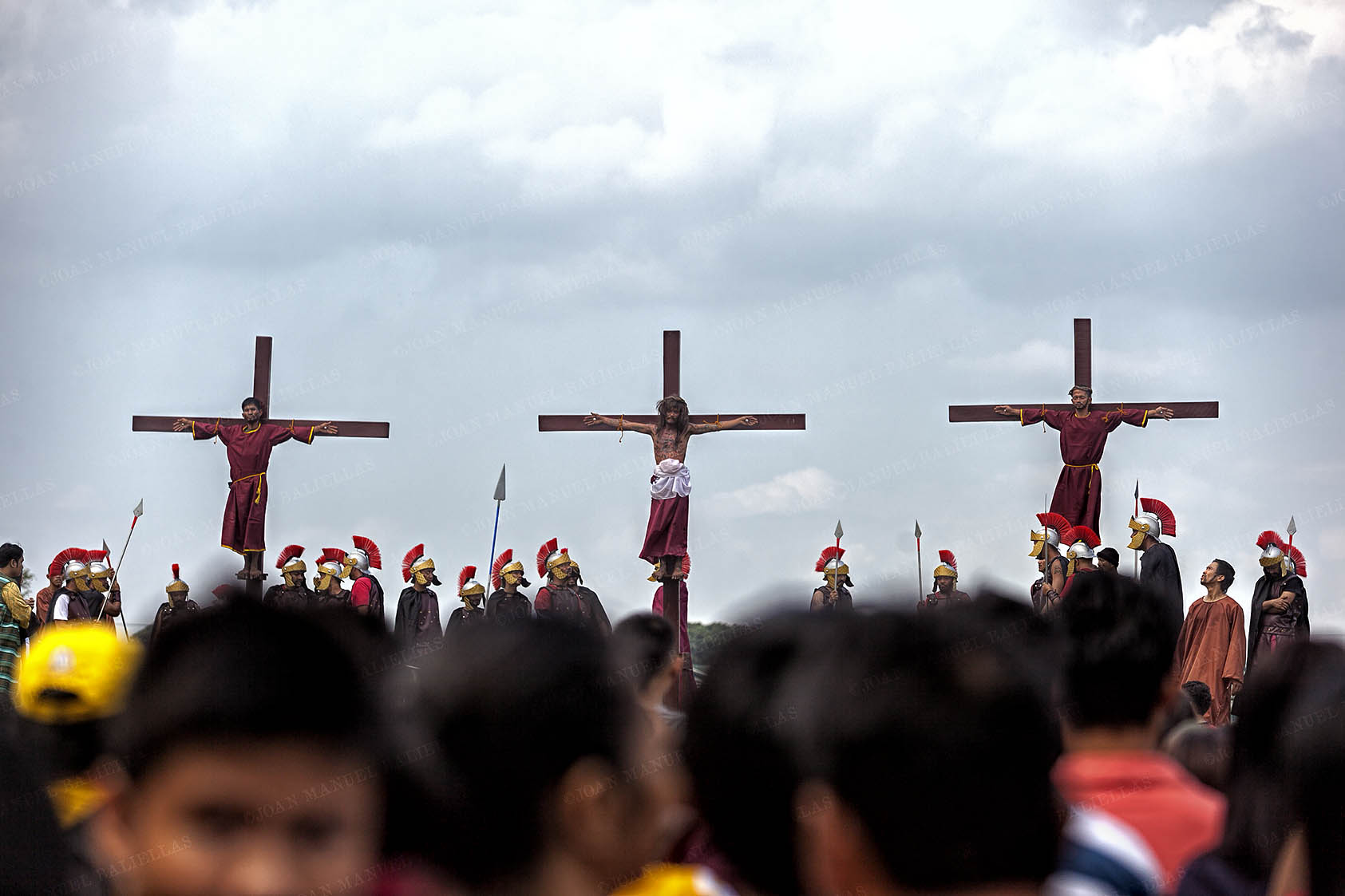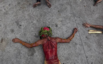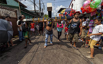 The penitents carry their heavy crosses throughout the procession.
